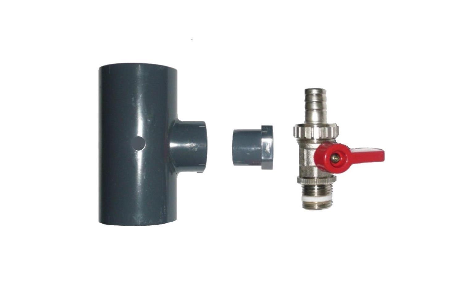 Pool Schwimmbad Entleerungsset für PVC Verrohrung d 50 mm 1x Reduktions-T-Stück (70708) 1x Reduktion 32x3/4 Zoll (70885) 1x Entleerungshahn (70207)
