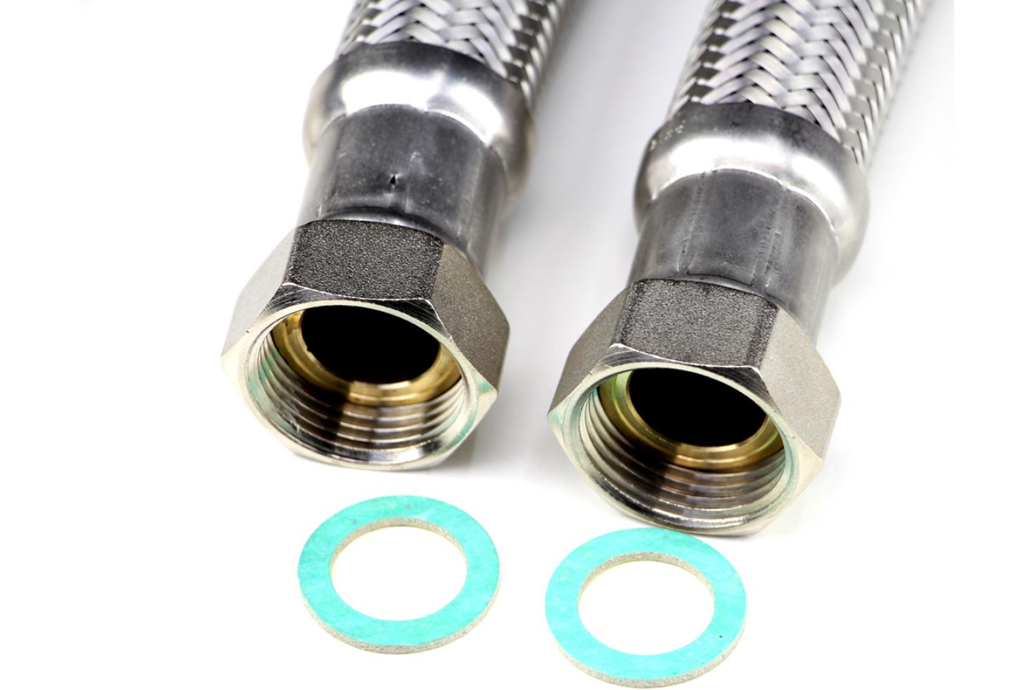 Edelstahl Panzeschlauch für TRINKWASSER ( KTW, W270)2 x Überwurfmutter mit 1" Anschluss inclusive Flachdichtungen