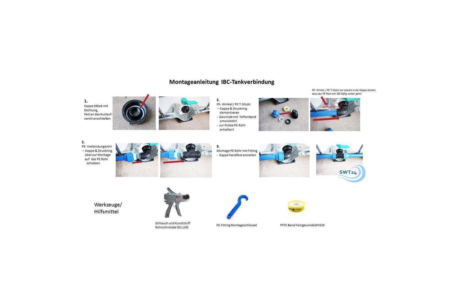 Anschluss am Tank (oder vorh. Auslaufventil) S60x60 DN 50 Grobgewinde, passt an über 90% aller IBC Tankanschlüsse