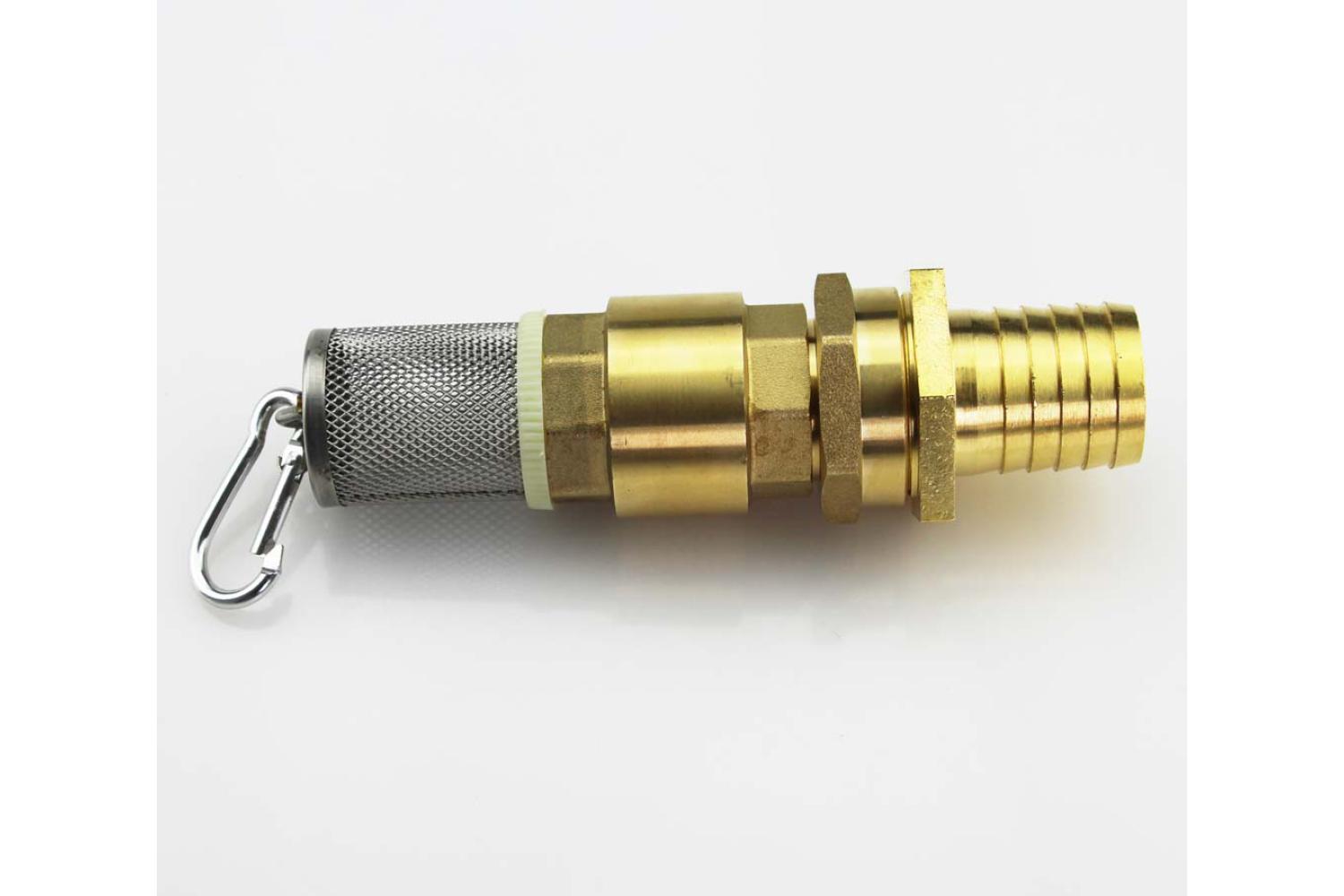 MS-Fußventil mit Ösen, Karabiner und Schlauchtülle in der Größe 1 1/4" zum Schlauchanschluss für einen Schlauch mit Ø 32 mm Innendurchmesser
