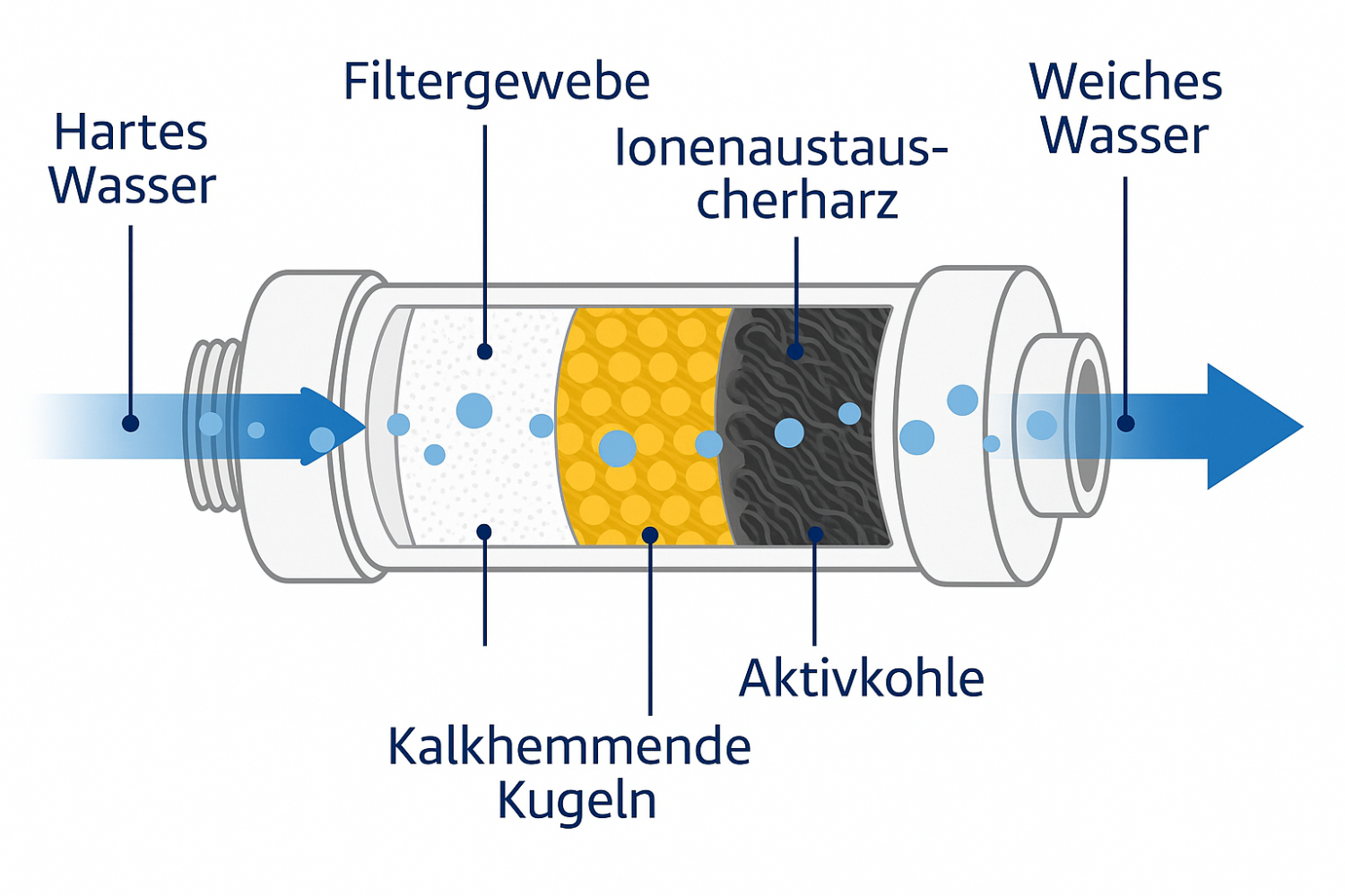 Mehrstufe Filterung u.a. werden Bakterien, Legionellen, organische Verbindungen, Kalk, Chlor und Chloroform und mechanische Schwebeteile beseitigt. Weiches gereinigtes Wasser hilft bei Hautproblemen reduziert Kalkablagerungen. Besonders empfohlen für Kinder und Erwachsene mit sensibler Haut. Der Filter besitzt antibakterielle Eigenschaften. Dieser kleine Filter bewirkt, dass organische Verunreinigungen, die Schuppen und Haarbruch verursachen eliminiert werden. Hautreizung und Austrocknungen der Haut werden vorgebeugt.